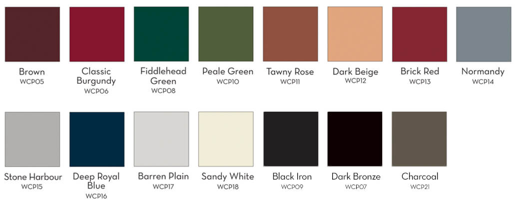 We offer 18 exterior paint colour choices which are water based and environmentally friendly as well as weather and fade-resitant.