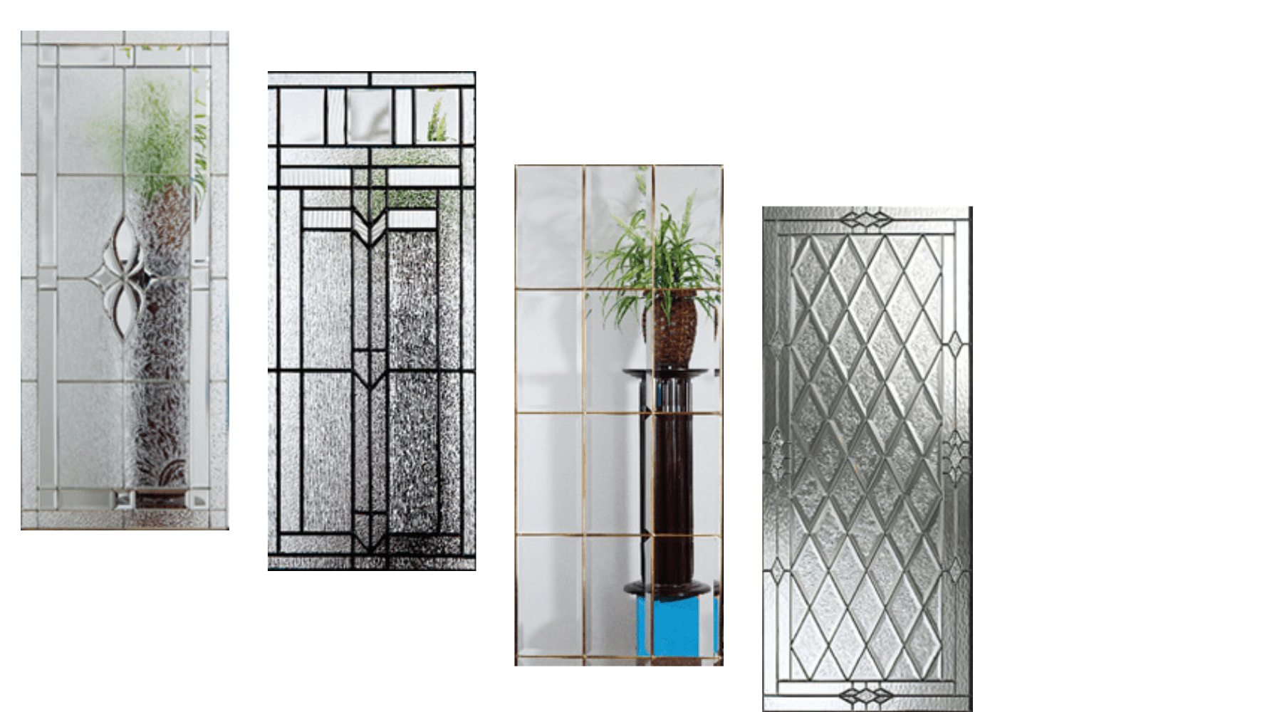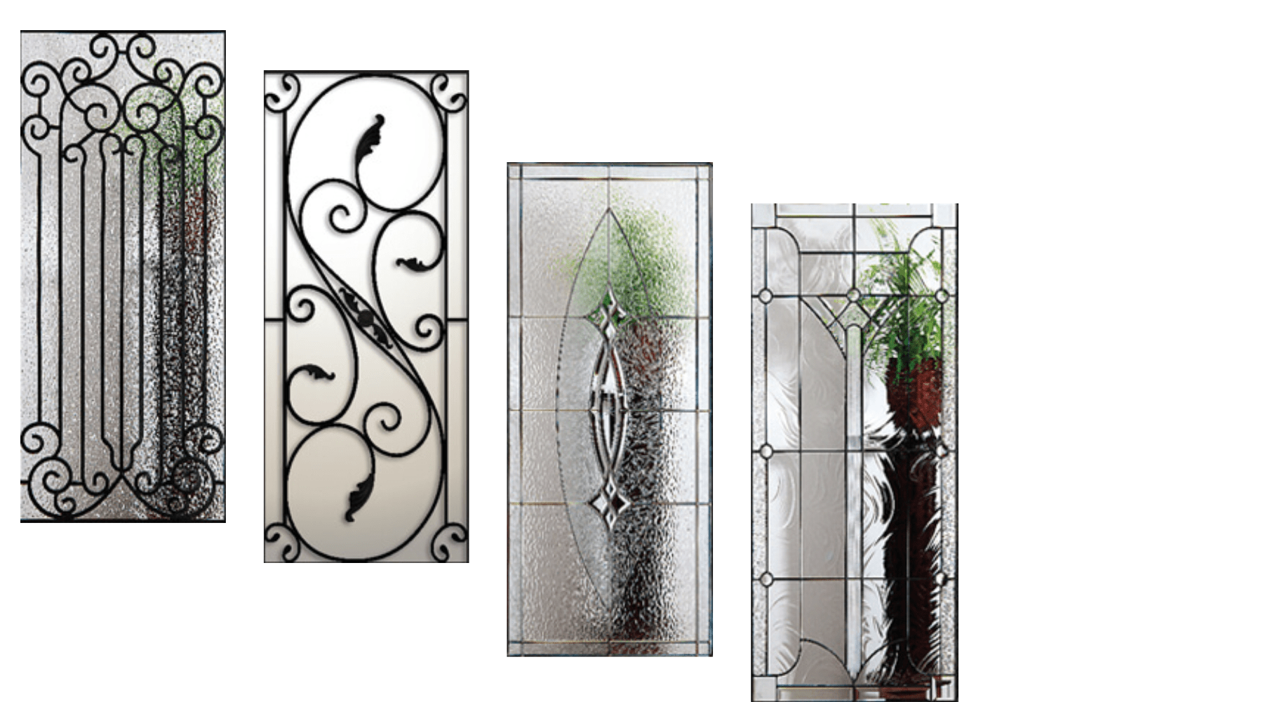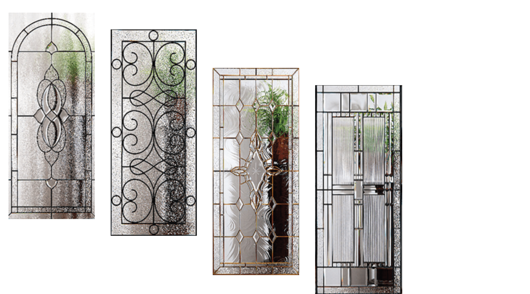 Let Window City help you create a front entrance that will be the focal point of your home and a true reflection of your taste and style. Our decorative glass collection uses solid metals and textured or beveled glass. Together these materials create true works of art. We have a simple guide to allow you to decide what level of “Privacy” is best for you (from clear to obscure) when choosing your glass style.